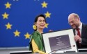 นางออง ซาน ซูจี รับรางวัลด้านสิทธิมนุษยชนของสหภาพยุโรป หลังจากที่เธอได้รับการประกาศให้เป็นผู้ได้รับรางวัลนี้ตั้งแต่ปี 2533 ซึ่งขณะนั้นเธอไม่สามารถเดินทางไปรับรางวัลได้ เนื่องจากการต่อสู้กับรัฐบาลทหารเพื่อประชาธิปไตยในพม...